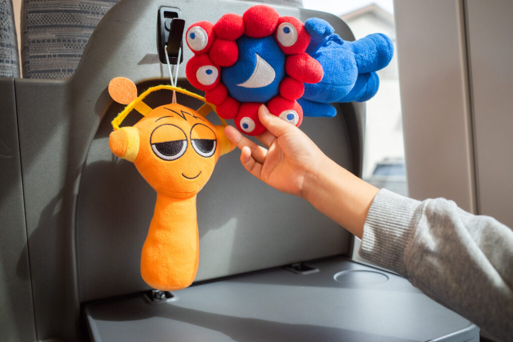 今回の旅のお供です。ミャクミャクとオレンです。ミャクミャクは今年のGWに万博に行ったときに買ったものです。ちょうどこの週末で万博が終わります。6ヶ月って早いですね。ちなみにオレンはスプランキーのキャラクターです。