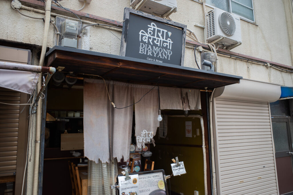 中津駅から少し歩いて着いたのは「ダイヤモンドビリヤニ」です。ここは大阪で有名なビリヤニ専門店です。父はビリヤニが大好きで、ここのお店も気になっていたようです。