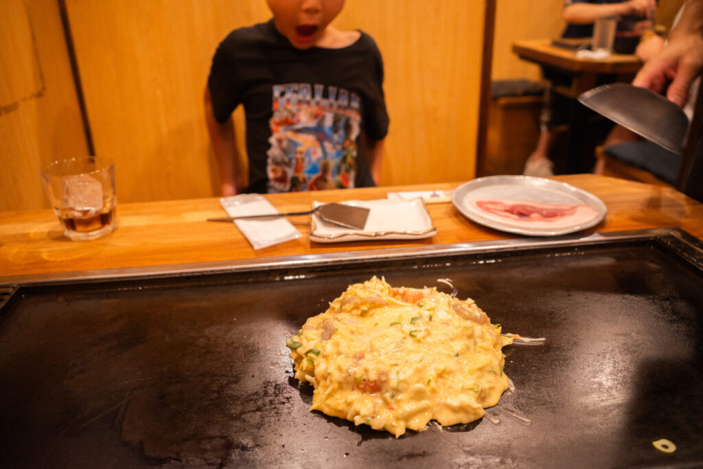 夜ごはんはお好み焼きにしましょう。向かったのは「おかる」です。ここは以前にも来たことがあります。とても美味しかったので、また行くことにしました。