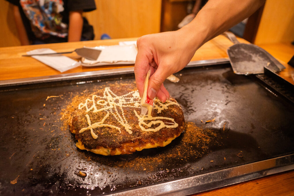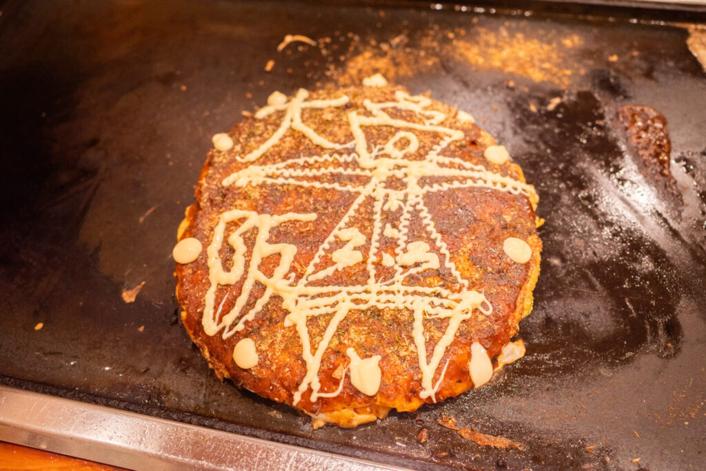 そしてこのお店の特徴が、マヨネーズで絵を描いてくれることです。何を描いてくれるかはお楽しみです。さて、今回は……