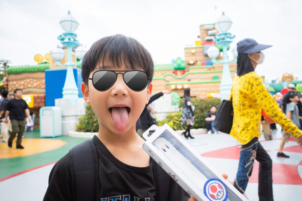 スーパー・ニンテンドー・ワールドでは、パワーアップバンドを持っているとさらに楽しめます。私も欲しかったので買ってもらいました。父は若干渋っていましたが、私がしつこく懇願したので買ってくれました。マリオ・ルイージ・ピーチ・ヨッシー・ドンキーなどいろいろな種類がありますが、私はキノピオを選びました。