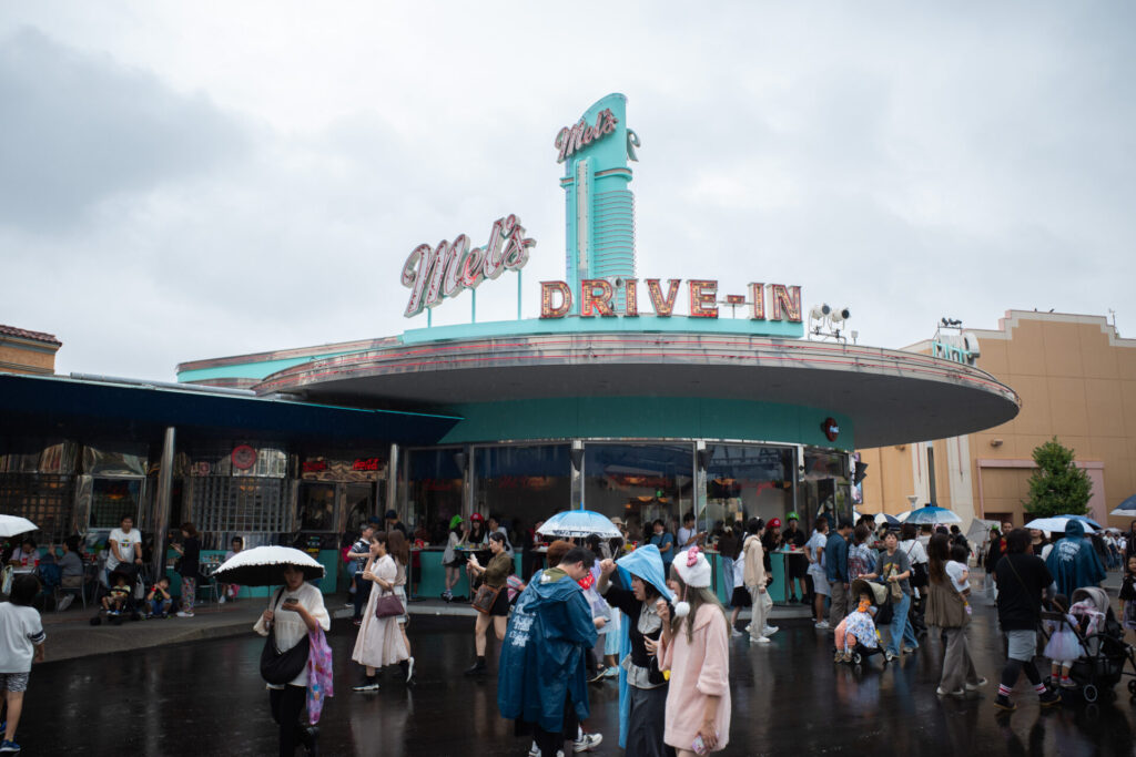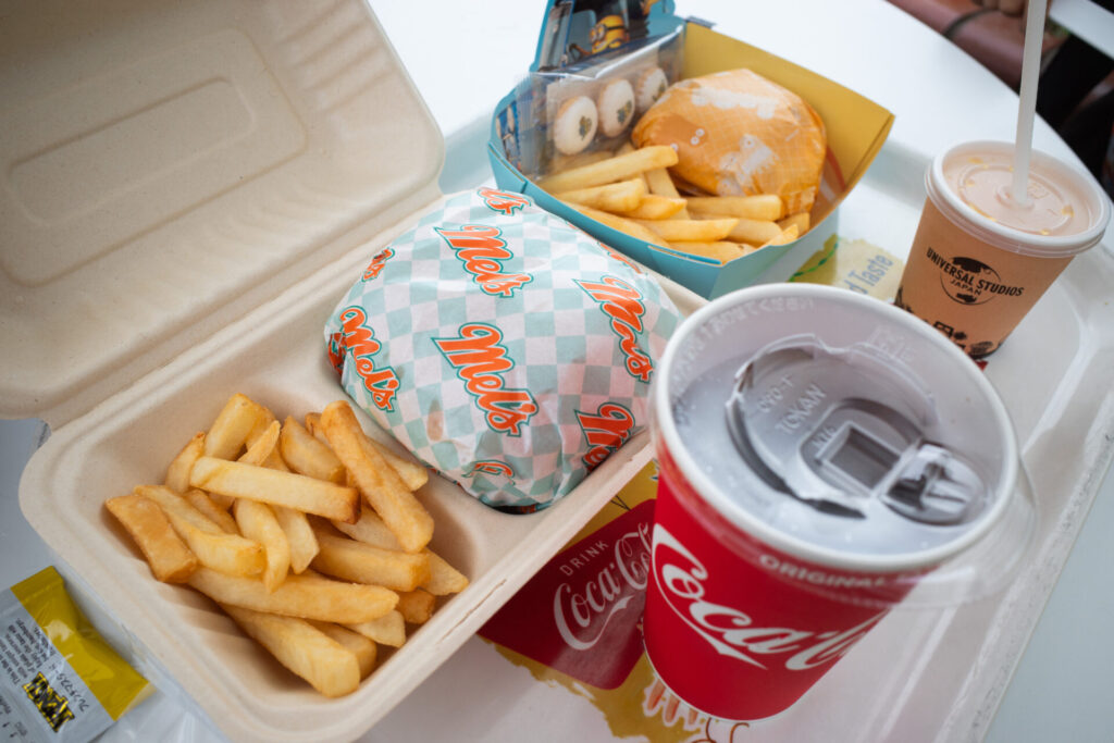お腹が減ったのでランチにしましょう。USJにはたくさんのレストランがあるので、どこに入るか迷ってしまいます。検討のうえ、メルズ・ドライブインでハンバーガーを食べることにしました。