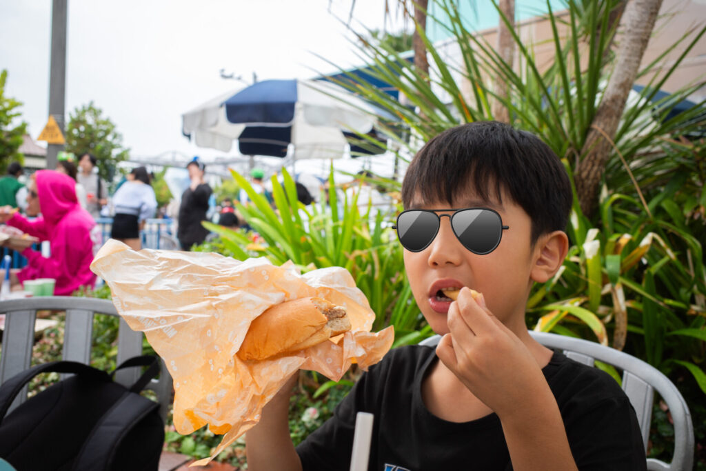ハンバーガーを食べて、体力回復です。USJを散策しましょう。