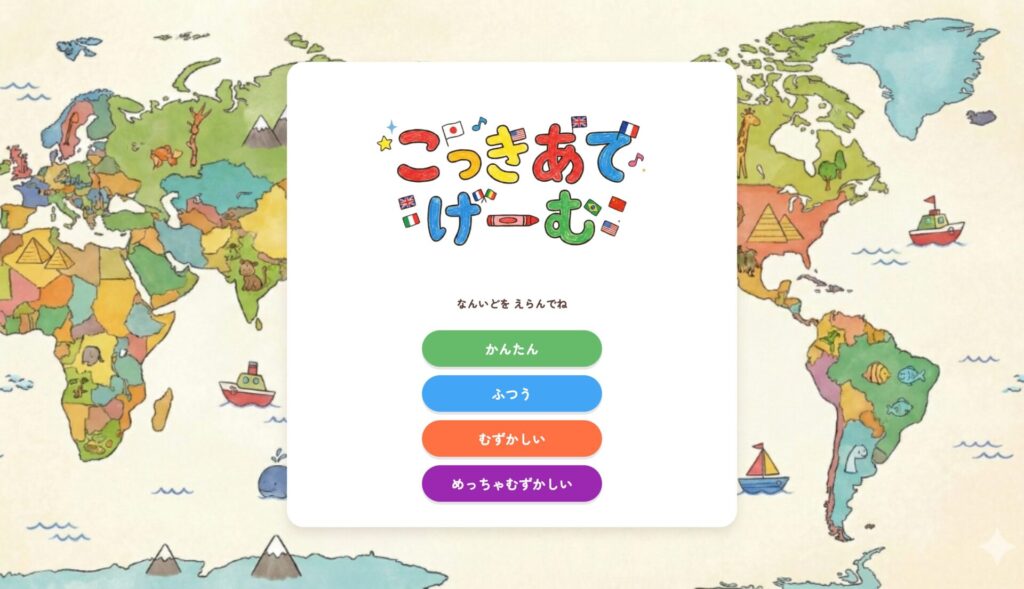 最近、小学1年生の息子が国旗に興味を持ち始めました。楽しみながら学べる教材として、オリジナルのクイズゲームを作成しました。