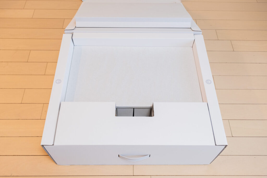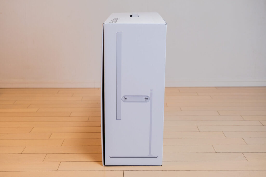 そんな中、2026年3月の新モデル発売直後に、楽天市場で状態の良い中古品を発見しました。購入したのは標準ガラス傾きと高さを調整できるスタンド付きモデルです。スタンドには3種類あり(傾き調整スタンド、傾き+高さ調整スタンド、VESAマウントアダプター)、今回購入したのは最上位にあたる構成です。新品価格¥339,800のところを中古¥239,980で購入しました。約10万円の節約です。