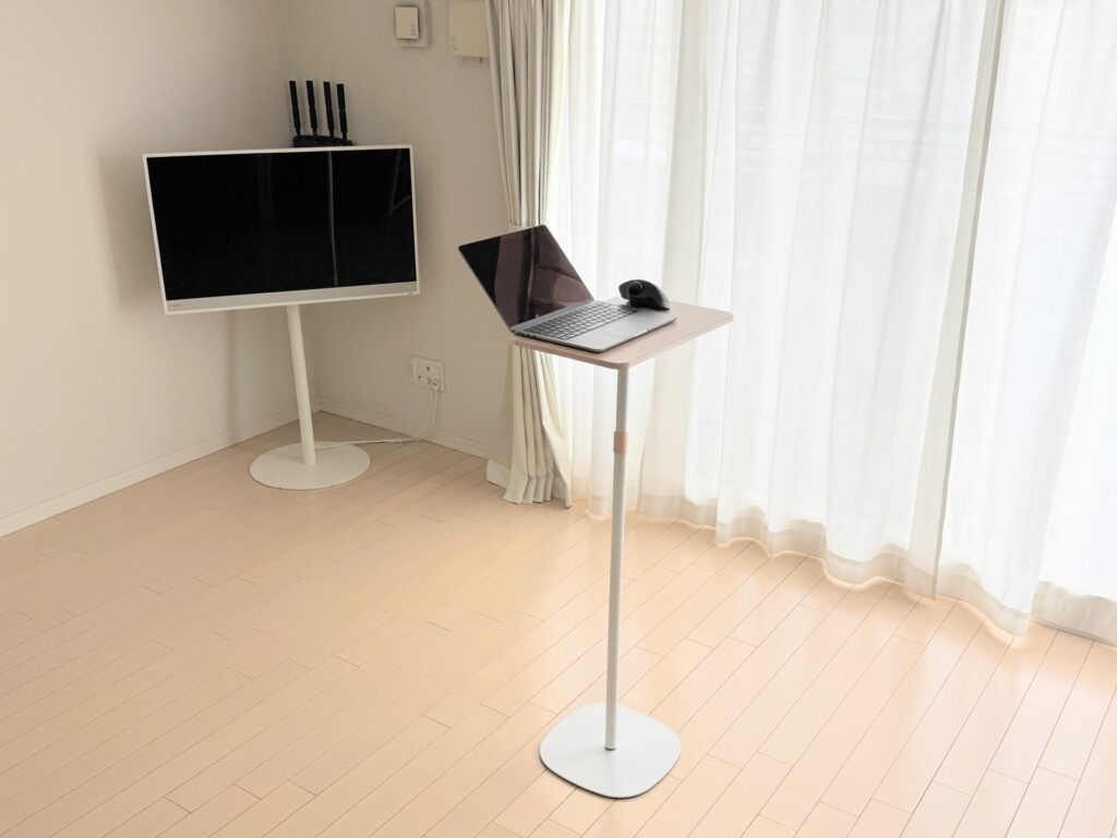 この記事では、在宅ワークの気分転換のためにリビングでスタンディング作業できる環境を作った話をレビューします。